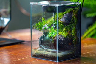 You can not see any hint of red clay. The moss spreads more on the glass panel. The substrate on the wall is super thin, less than 0.5cm, merely can see any soil.