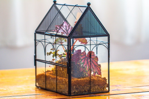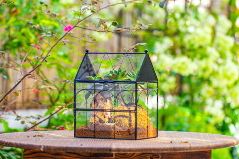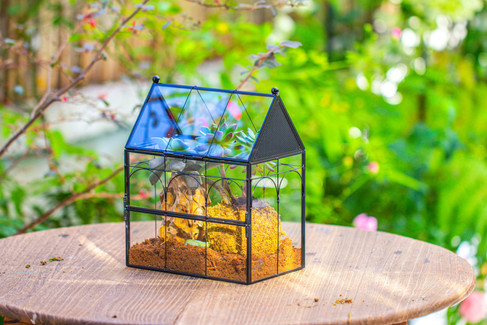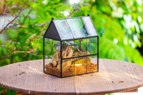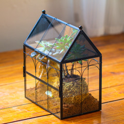 I use moss ball or small cement planters inside one of my popular house shape insect terrarium. If you are looking for any easy live plant terrarium. Here are they.