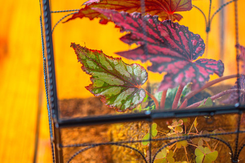 There are succulents terrarium, cacti terrarium and begonia terrarium.