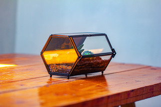 Hexagon spider terrarium with peacock moss and Saxifraga