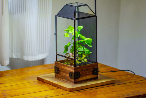 The water-land terrarium immediately comes out. But the wood base cannot contain water so I chose a 12x12cm acrylic container and it fits perfectly (and it bent after I fill in water and cannot fit in anymore. I should choose a smaller one).
