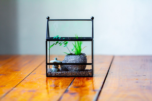 In this terrarium, I choose fittonia and maiden hair fern. The fern is a wild one. It is pretty small. This terrariums suit for fern growing. It keeps enough moist for the ferns to grow well and allow vents at the same time.