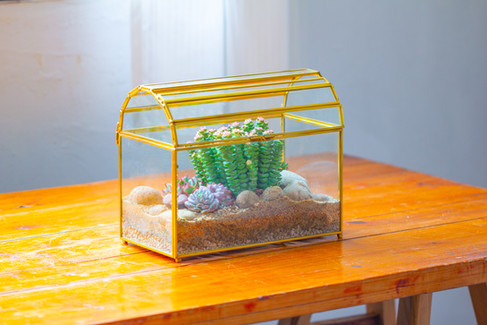 Succulents in gold Treasure Terrarium Box